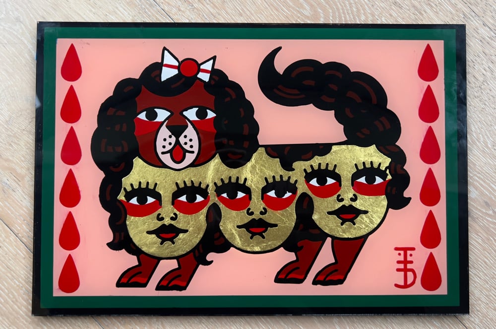 Hand painted one shot paint , gold leaf and mother pearl on glass